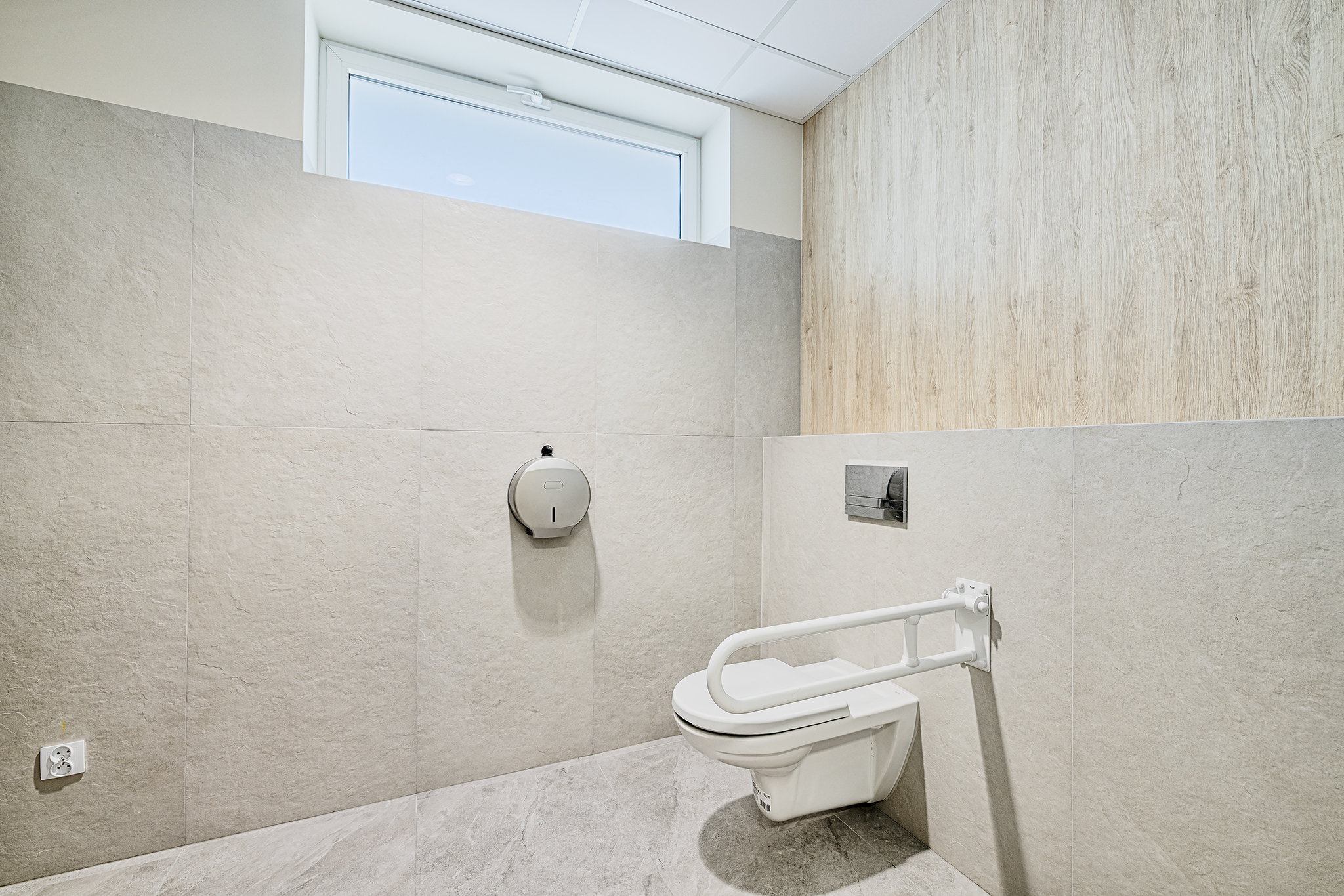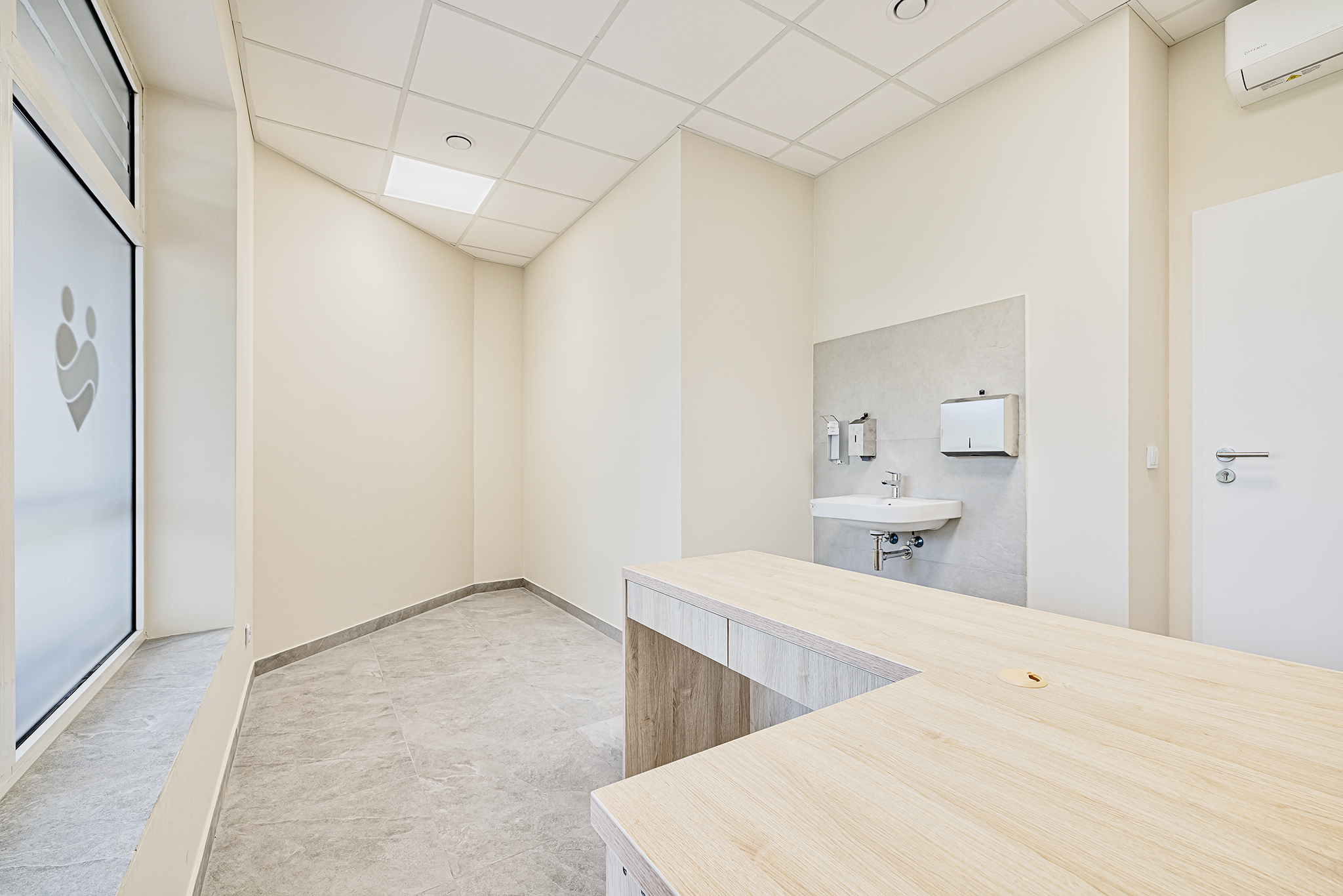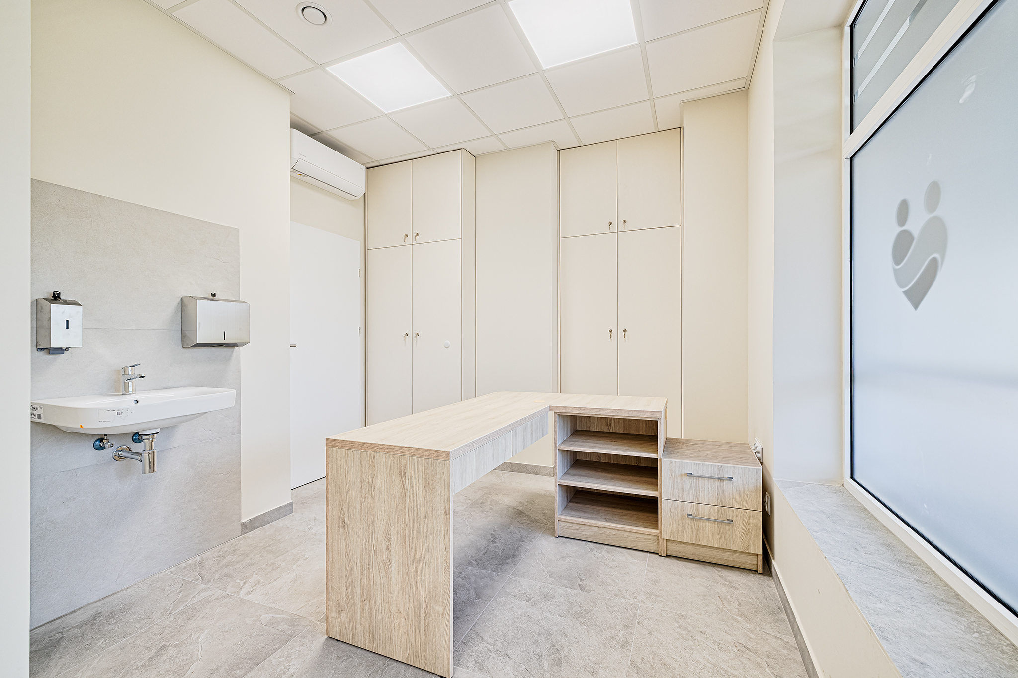 Układ pomieszczeń został zaprojektowany z myślą o funkcjonowaniu placówki medycznej i wygodzie użytkowników. Jasne, uporządkowane przestrzenie oraz odpowiednie doświetlenie wpływają pozytywnie na odbiór wnętrza. Zastosowane materiały wykończeniowe są łatwe w utrzymaniu czystości i odporne na intensywne użytkowanie. Sufity podwieszane oraz instalacje zostały zaplanowane tak, aby nie zaburzać przestrzeni i jednocześnie spełniać wymagania techniczne. Całość tworzy środowisko sprzyjające zarówno pracy personelu, jak i komfortowi pacjentów.