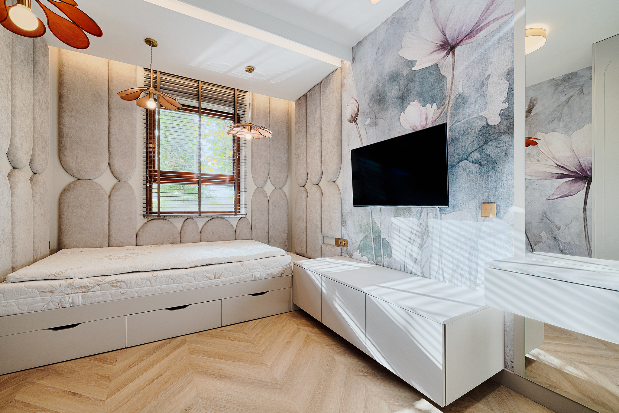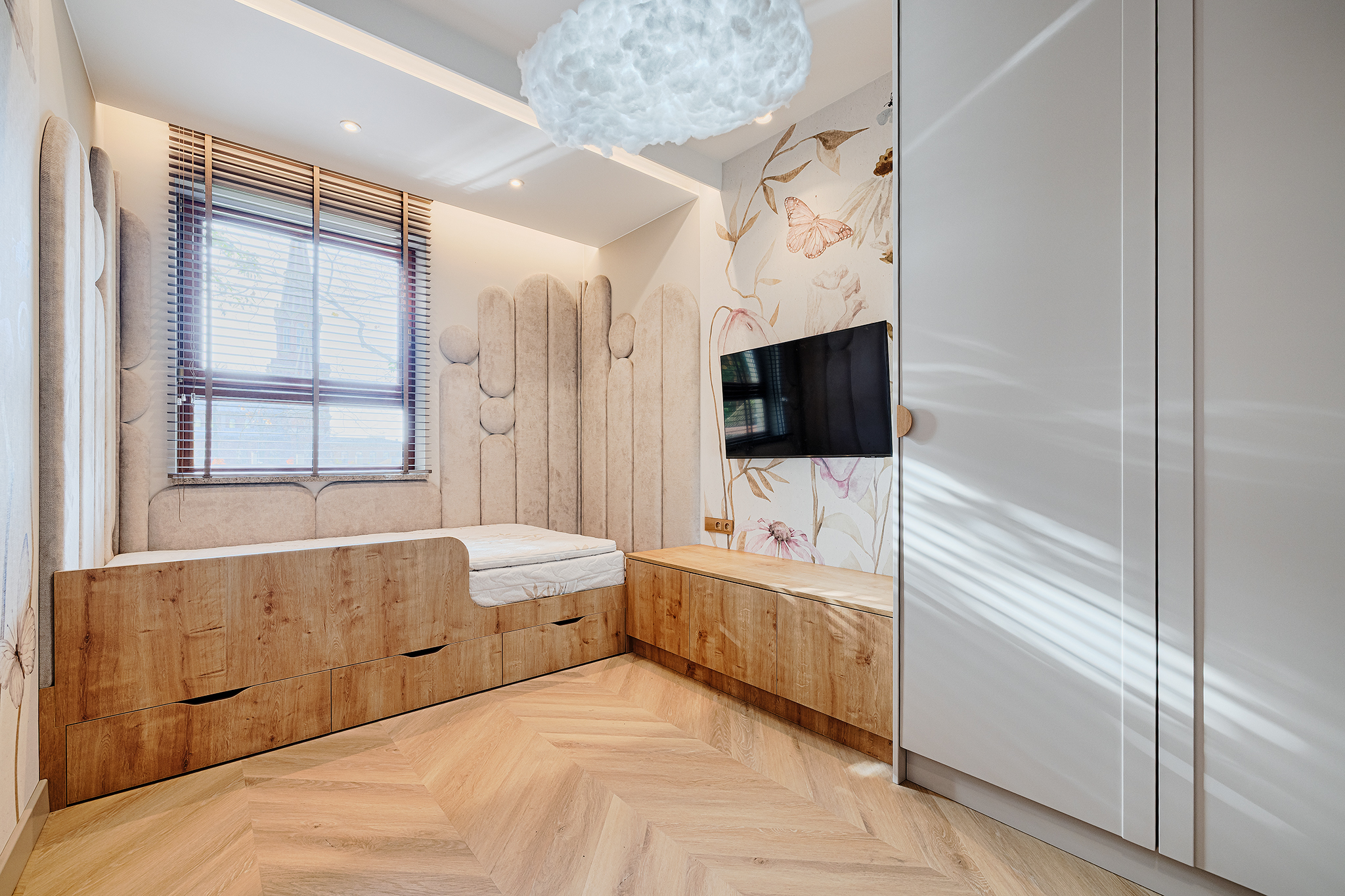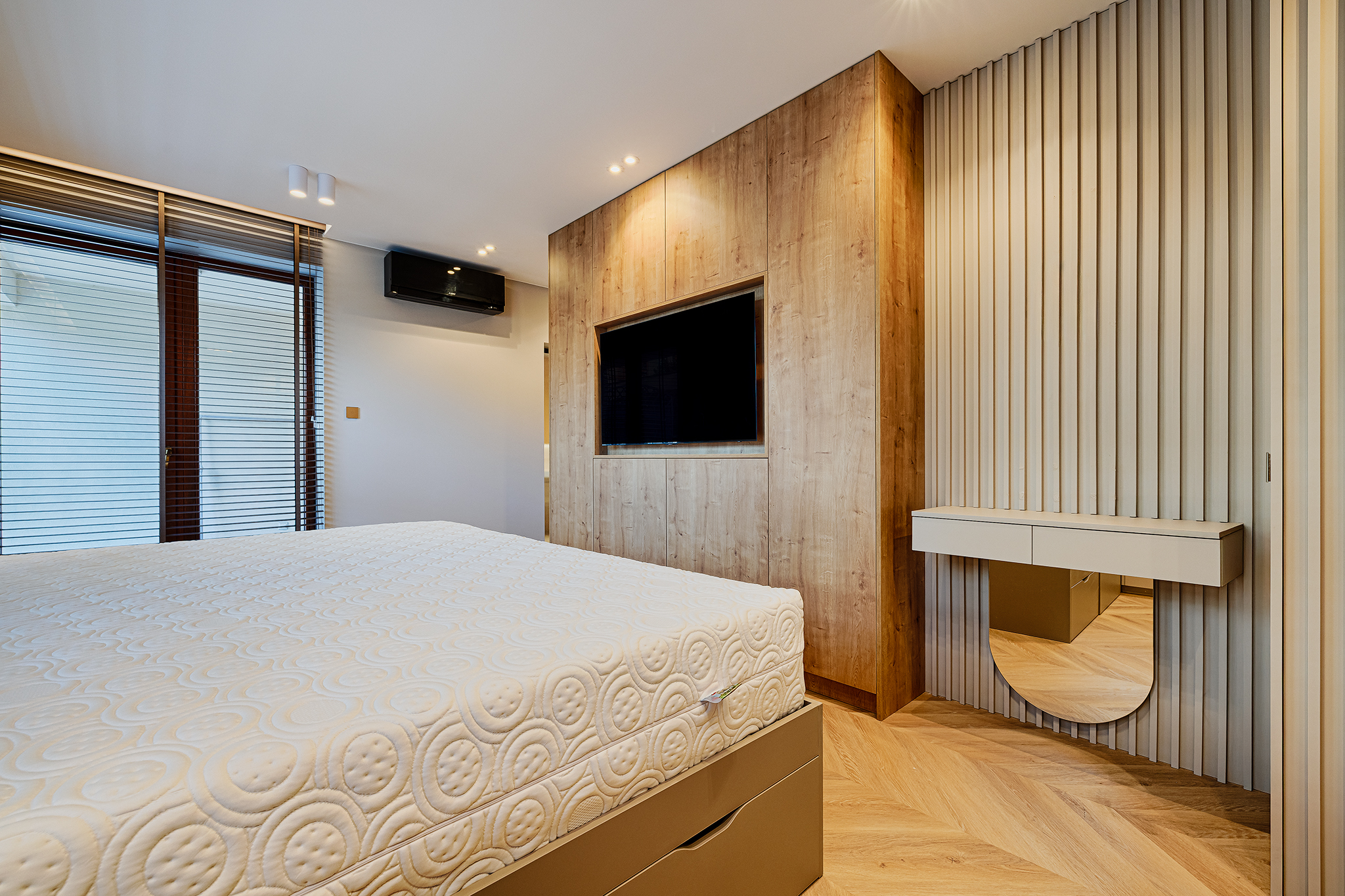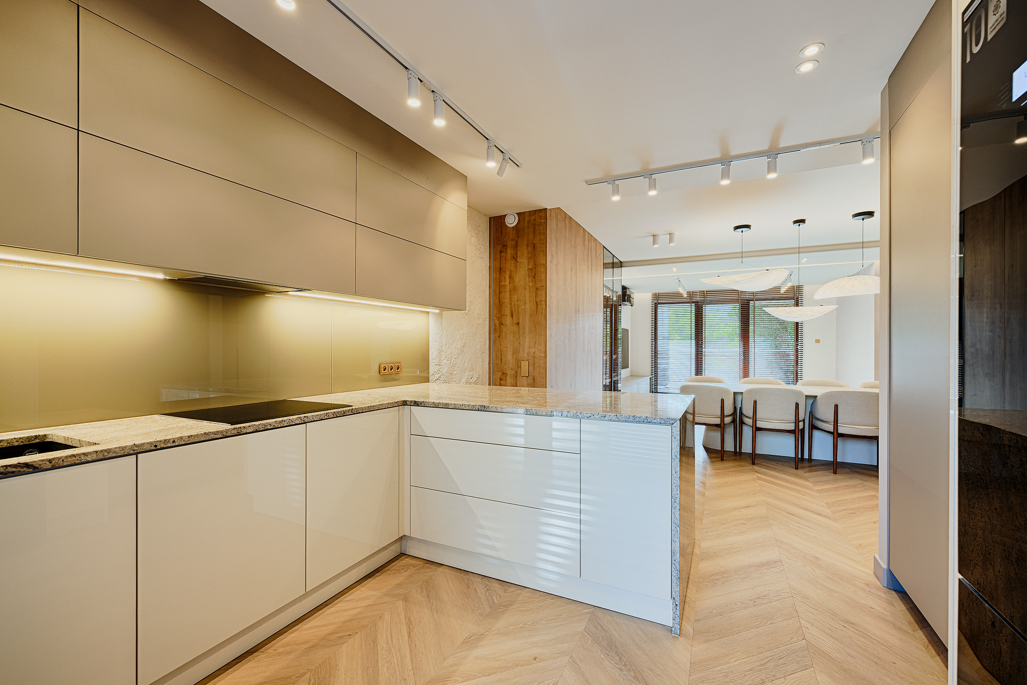 W centrum Łodzi stawiliśmy czołu nietuzinkowego projektu nowoczesnego apartamentu. Początkowym zakresem były prace wyburzeniowe i przygotowawcze do prac, wykonanie instalacji sanitarnej, elektrycznej i ogrzewania podłogowego. Z prac wykończeniowych naszym zdaniem było wykonanie sufitów podwieszanych z przestrzenią na oświetlenie LEDowe, naprawy tynków, wykonanie gładzi, malowania i tapetowanie. Dwie w pełni wyposażone łazienki w tym z wolnostojącą wanną. Wszystko zwieńczone panelami klejonymi w formacie jodełki, szynoprzewodami i ekskluzywnym oświetleniem.